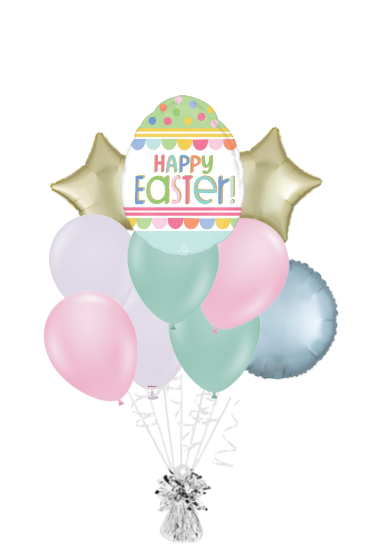 - Petite: 1 - 25'' Easter Foil, 2 Solid Color Foils, 4 Various Latex