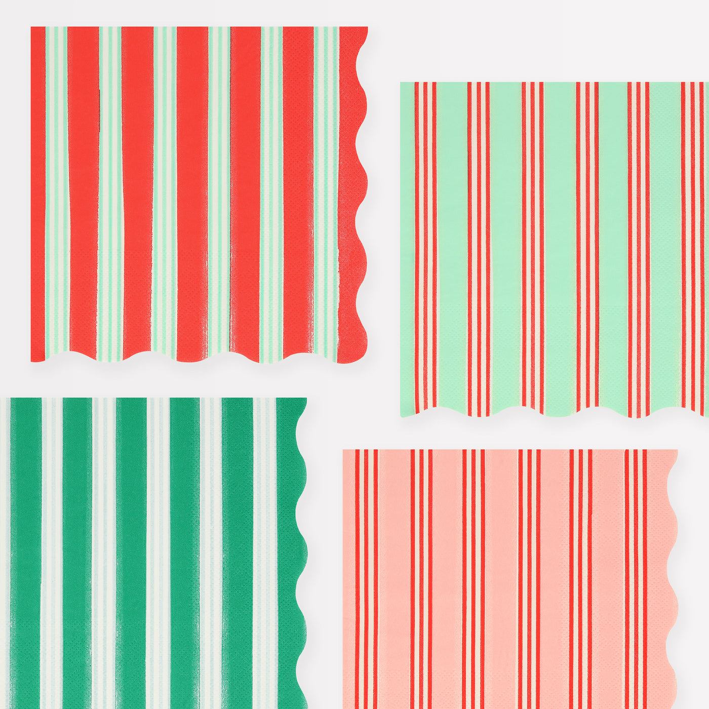 Bold stripes make a statement. Especially with our mix of traditional festive colors of red and green, with a modern pop of pink and blue, to keep things merry and bright. These fabulous large napkins, with stylish border details, are ideal to mix and match with all your Christmas tableware.
