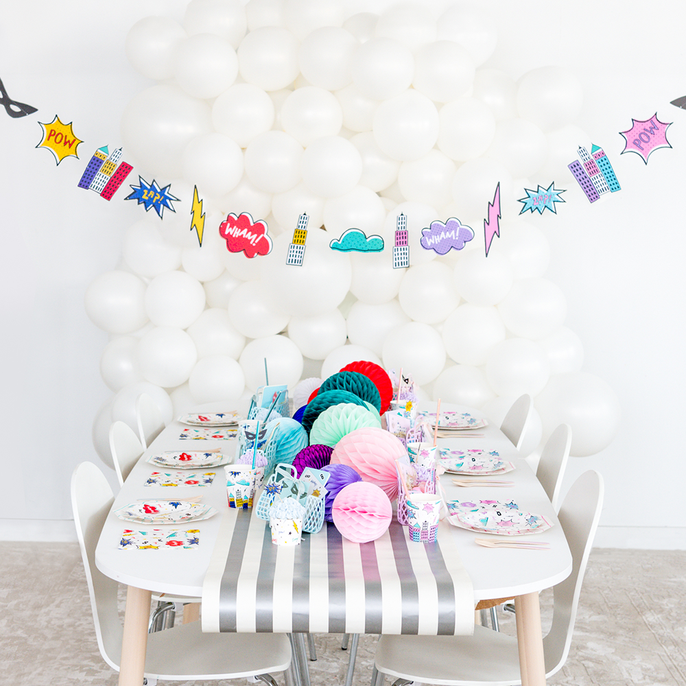 Zap! Bang! Pow! Wham! Featuring bold colors and silver foil-pressed elements, this banner has superpowers! What exactly are thingamajigs, you ask?! They are our favorite do-it-all party decorations! String them together to make a garland, attach them to balloons, hang them on the wall...you decide!