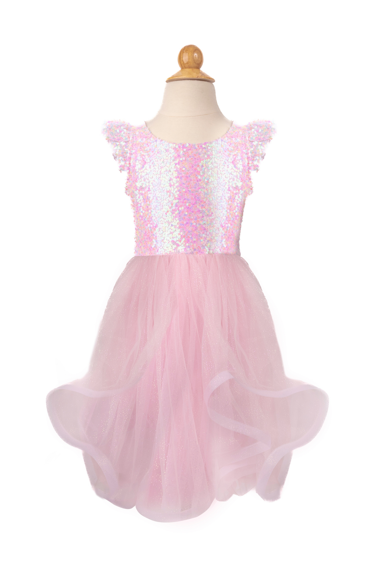 Get ready to sparkle in the Pink Sequins Twirl Dress! This dazzling dress features a top covered in shimmering pink iridescent sequins and a skirt with a special lining along the bottom, making it perfect for twirling. Ideal for dress-up days or special occasions, it's made for magical moments!