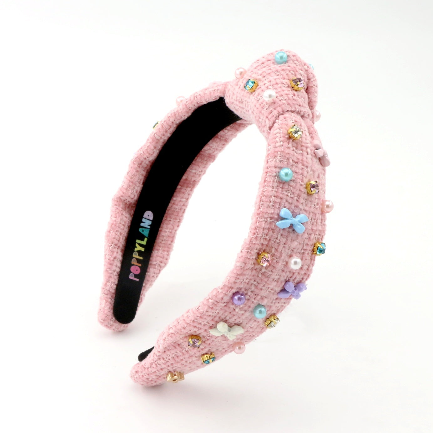 Enhance your winter wardrobe with our Tweed Bow Multi Headband, featuring a pink tweed base adorned with adorable pastel colored bow charms. This chic, girly, and fashionable accessory effortlessly complements any outfit, making it a must-have for the season. At Poppyland, where cuteness reigns supreme, we pride ourselves on offering accessories that bring joy and style to your collection. Embrace the cozy charm and elevate your look with our Tweed Bow Multi Headband today!