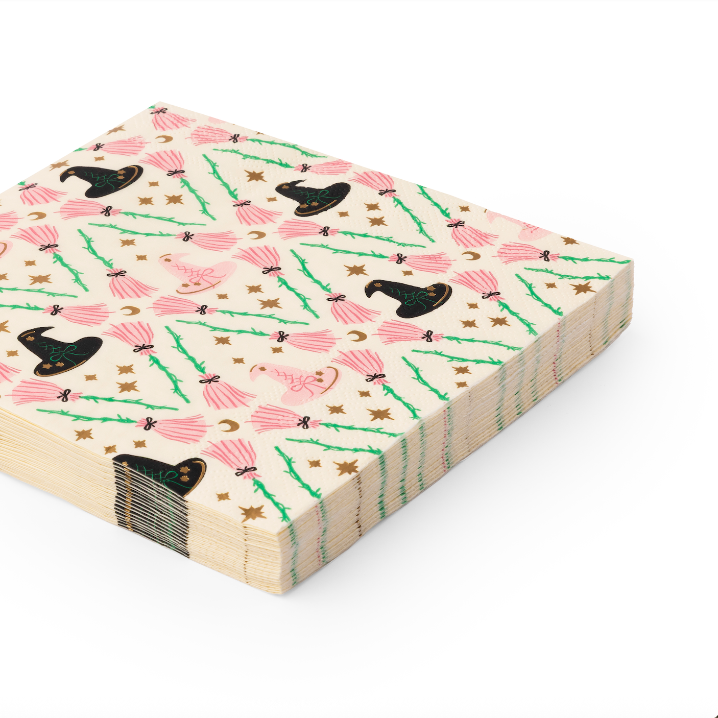 Elevate your Halloween tablescape with our Witch Hat & Broom Large Napkins. Featuring magical witch-themed designs in a whimsical pink and green colorway, these paper napkins are perfect for a Wicked-themed party or a Halloween soirée. Pair them with our Witch Hat & Broom Large Plates and Wicked Witch Cocktail Napkins for a spellbinding place setting.
